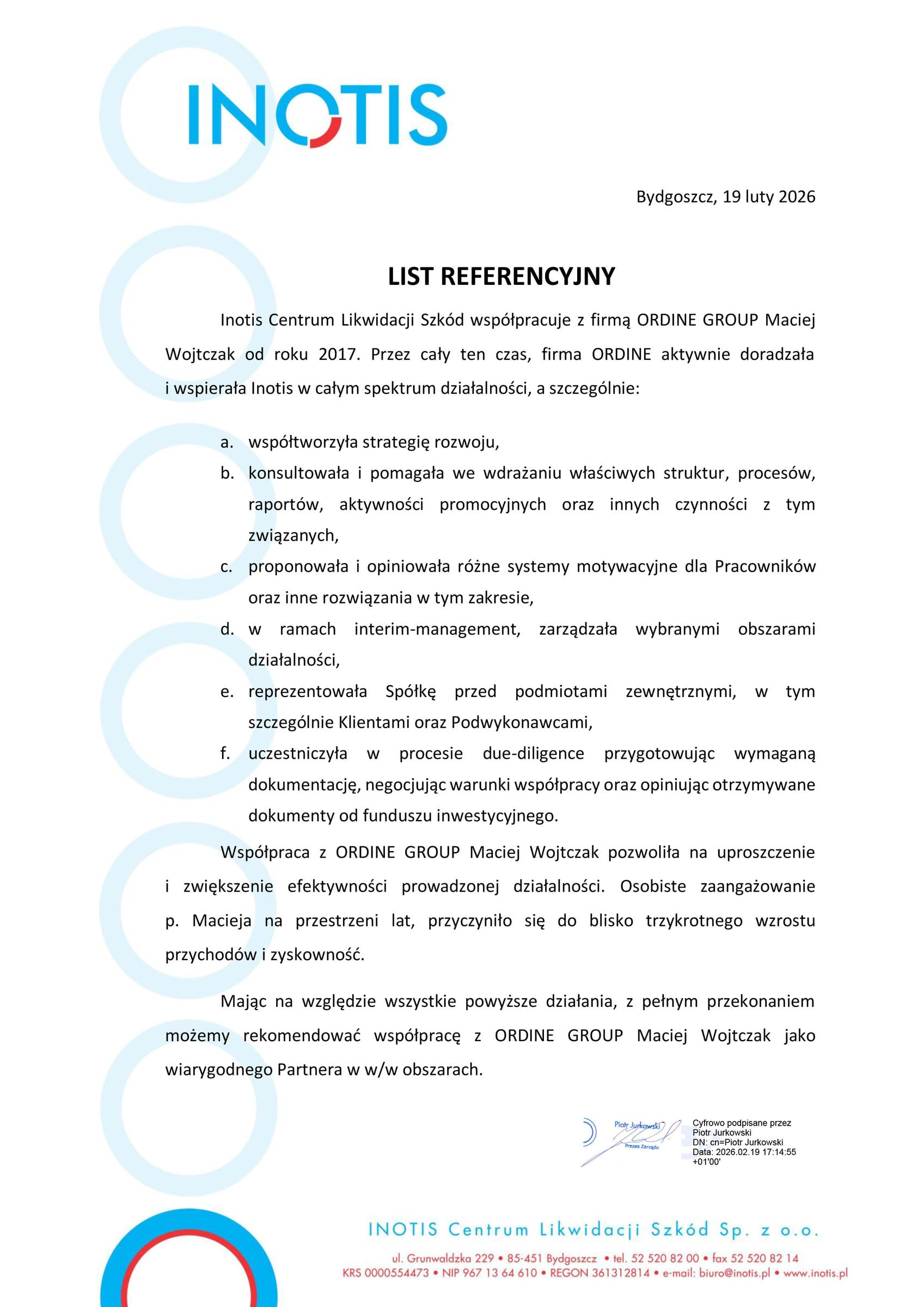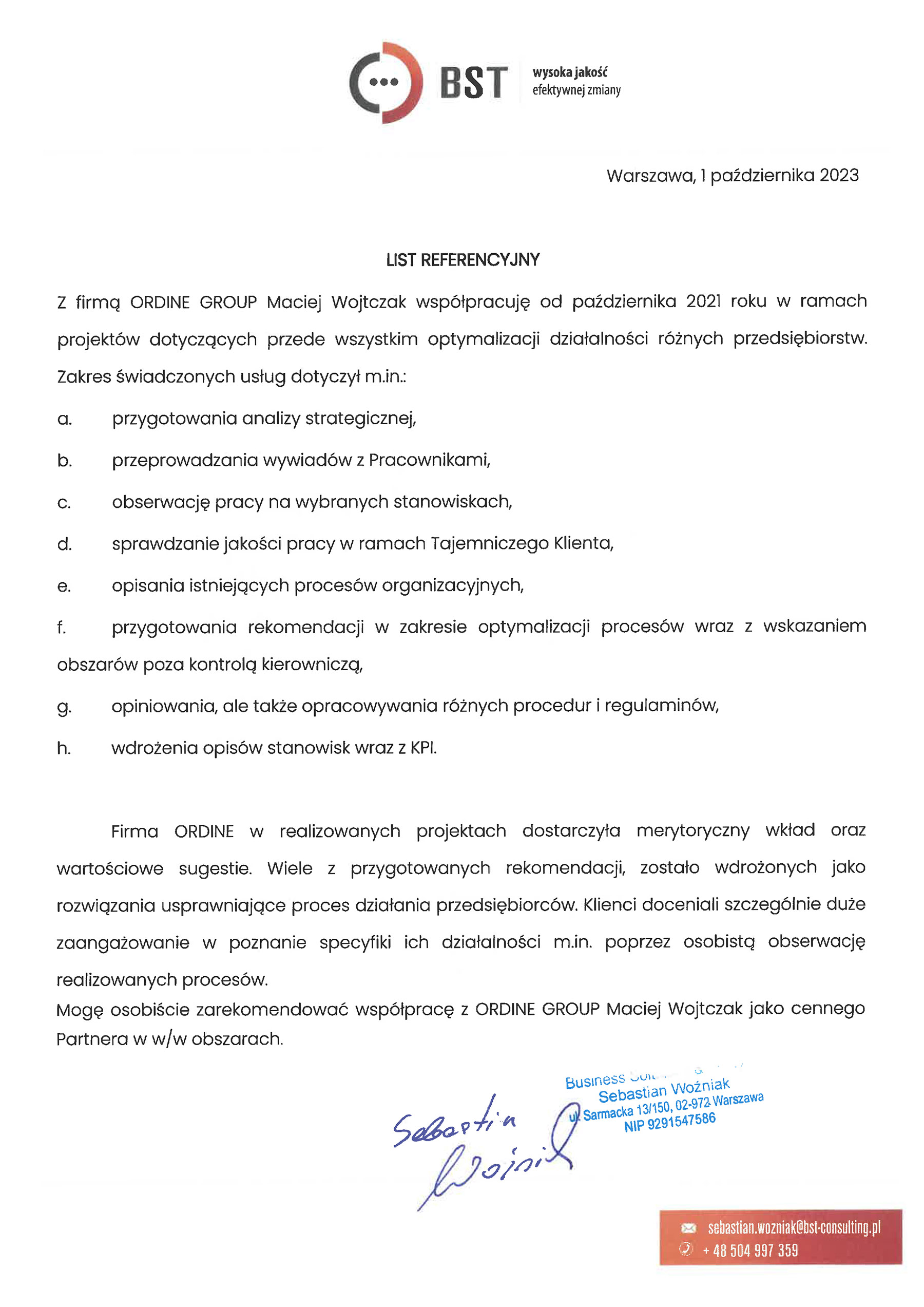 „Porządek duszą wszystkiego” to zasada, którą kierujemy się w naszej pracy. Zaczynamy od poznania firmy oraz jej sposobu działania, a następnie wspólnie wypracowujemy nowy model pracy. Zachęcamy do zapoznania się z tym, jak wygląda współpraca z nami i w jaki sposób pomagamy wprowadzać realne, dopasowane zmiany.